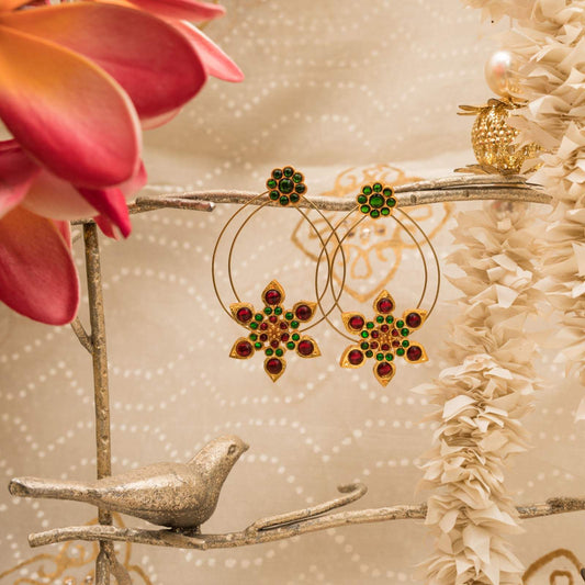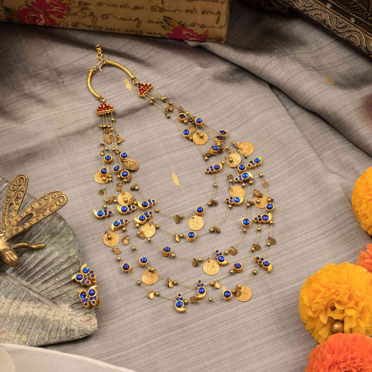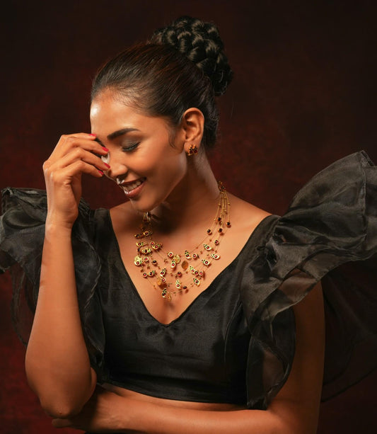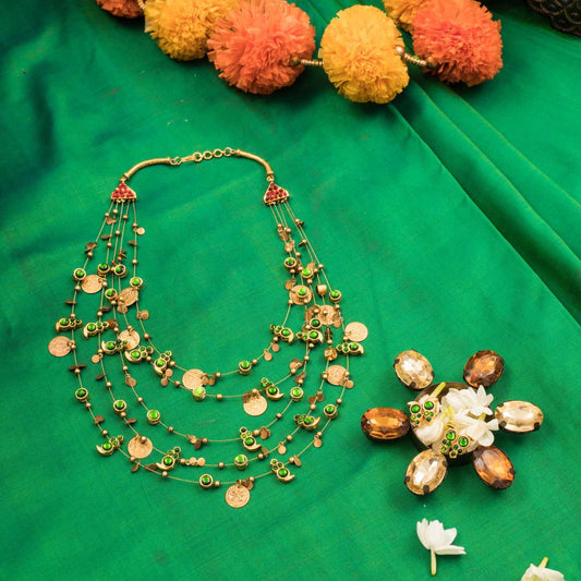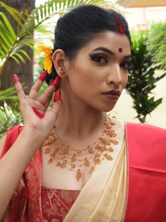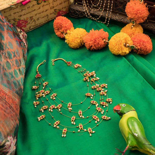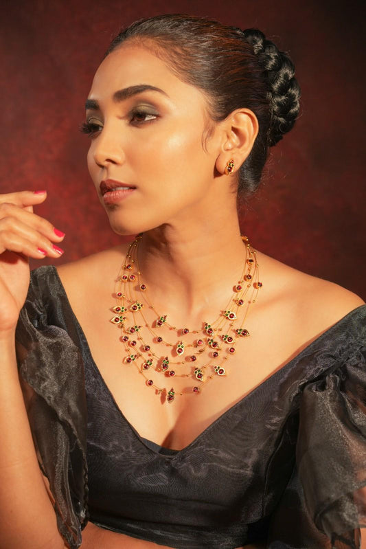 Trendy Layered Necklaces with Red Piece and Temple Motifs