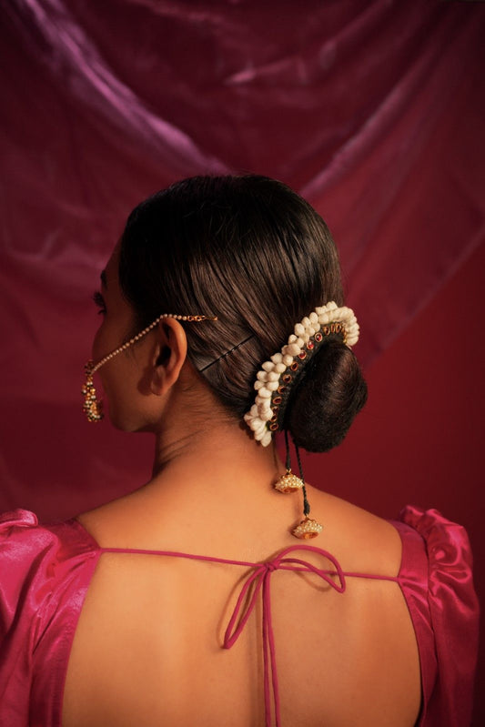 Temple Haar Design with Statement Temple Motif and Brocade in Black