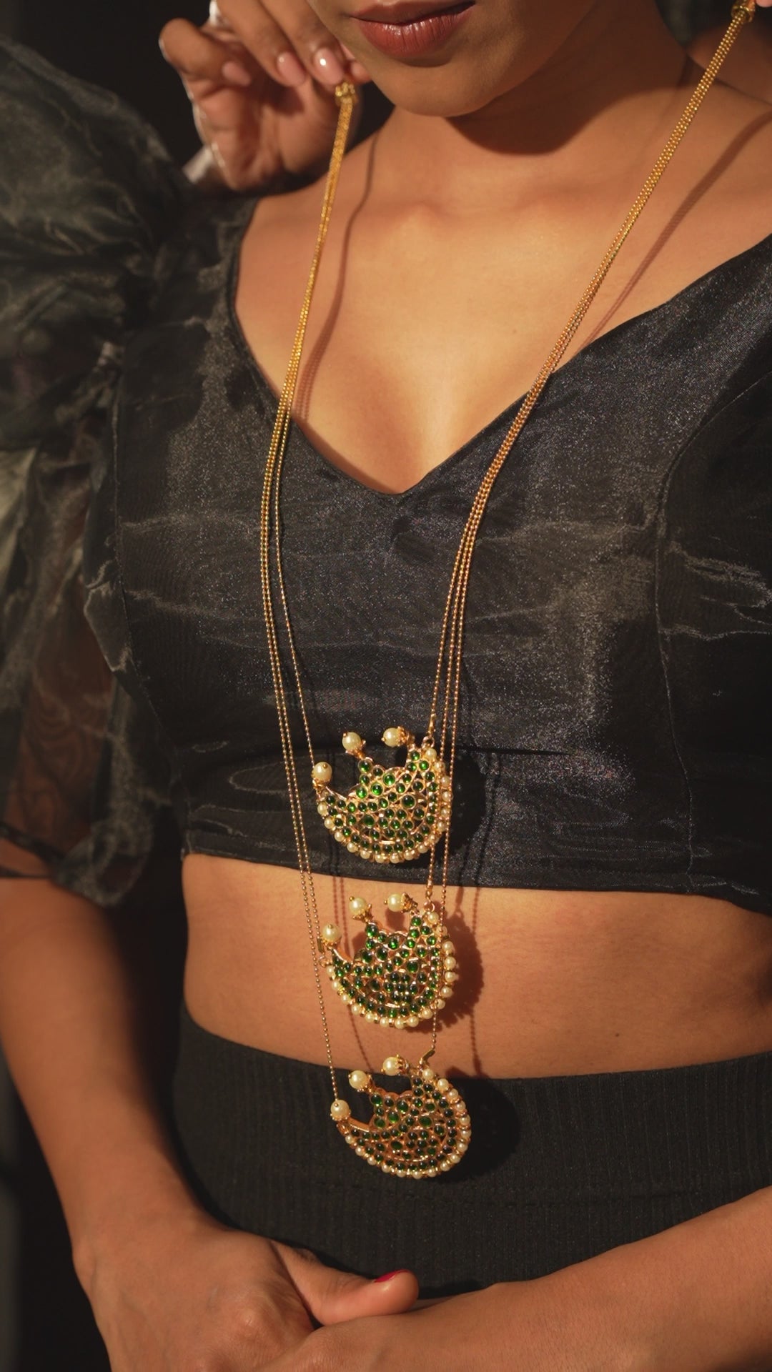 This moon necklace is a three layered work of art! Traditionally called the Chandra Billa, it adds grace to your look with its simple yet striking design. Handcrafted with care, slight variations make each piece unique.