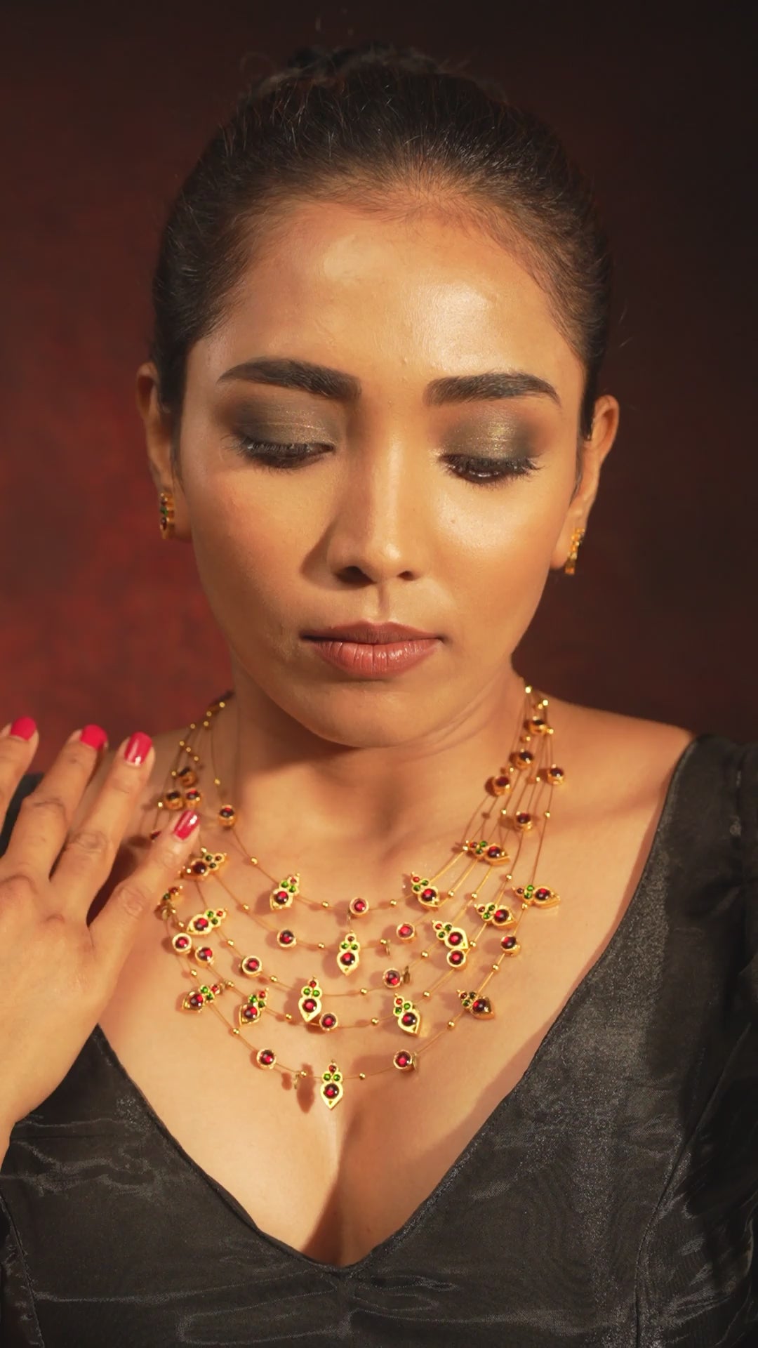 Add layers of style to your ensemble with this stunning layer neck chain. This layered wonder is a prized addition to your collection, complementing both Indian and western wear. Each handcrafted piece may have slight variations.